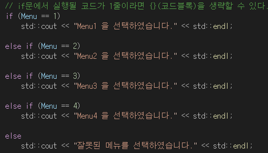 else if는 if문 1개에 여러개의 else if가 존재할 수 있다. 없어도 된다.