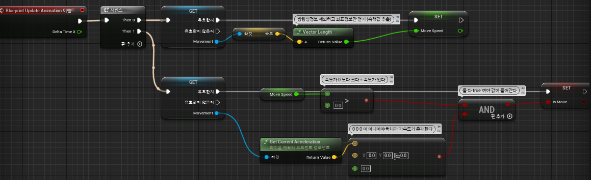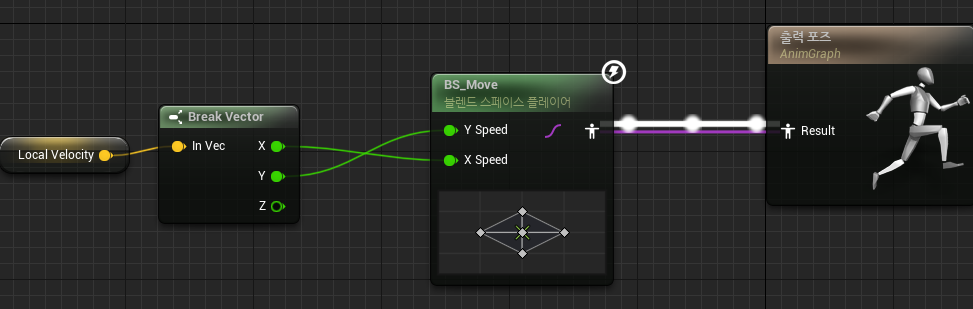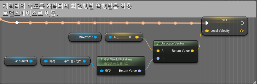 월드 상태에서 캐릭터 velocity 방향을 .. 로컬스페이스에 가져갔을 때, 어느 방향에 있는지를 확인한다.