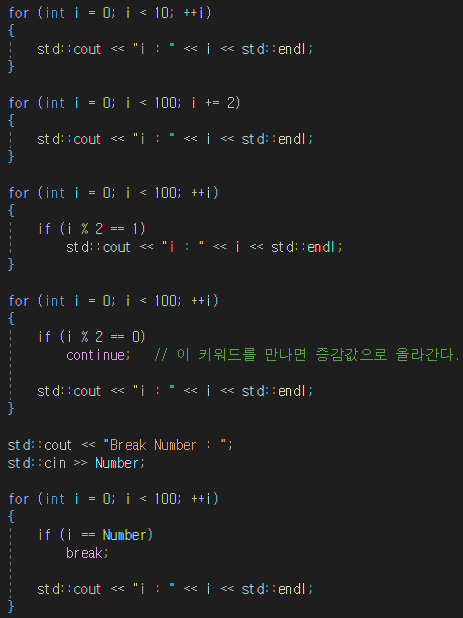조건식 -> true일 경우 코드 실행 -> 증감값 -> 조건식 ->