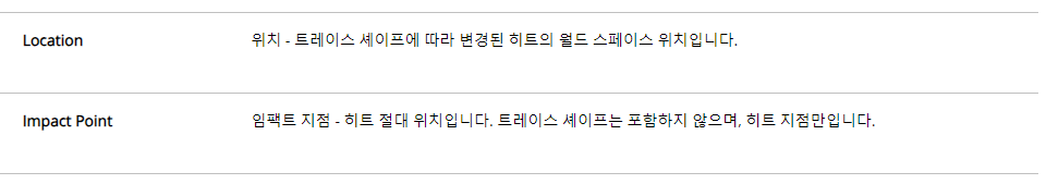* HitResult에 Location과 ImpactPoint가 있고 약간의 차이가 있다.
