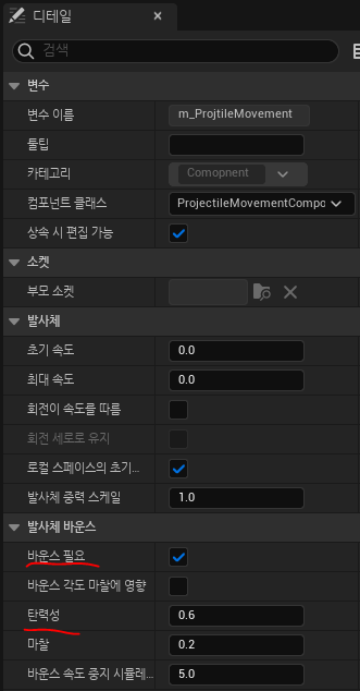 투사체 상속받아서 쏘면 툭툭 떨어지는 수류탄 형태의 투사체를 생성