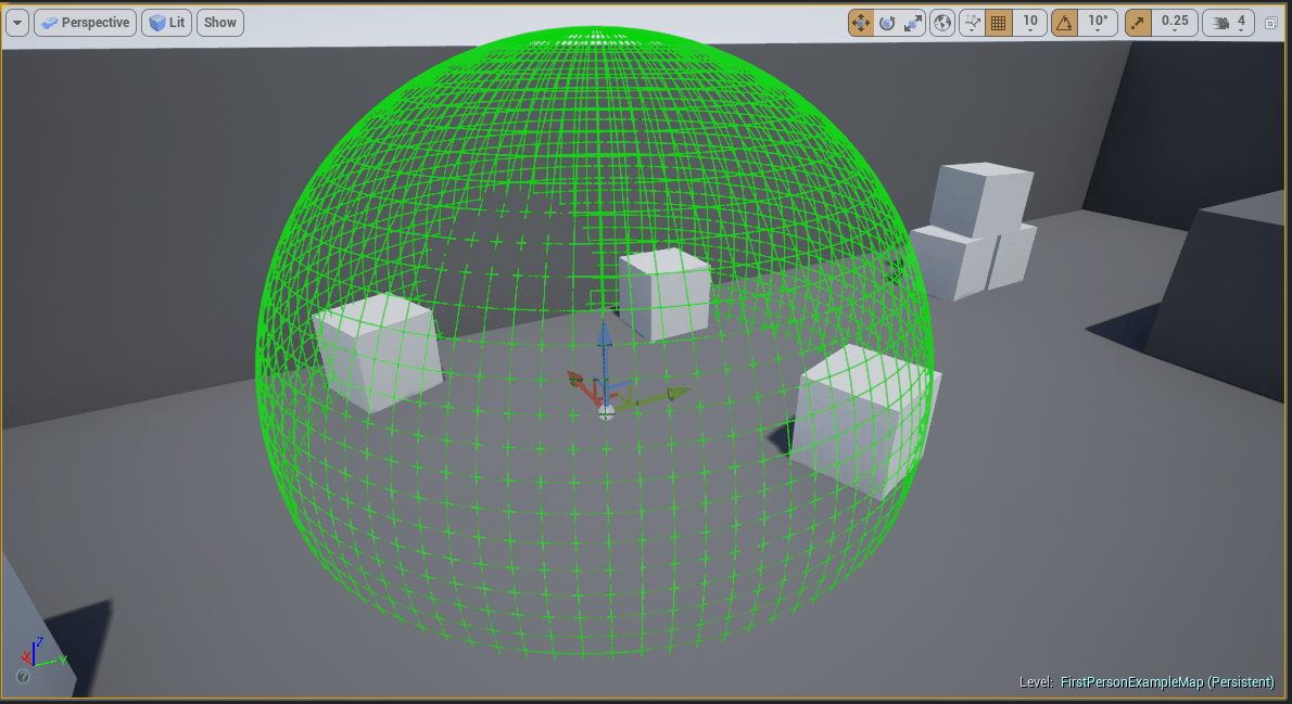 // DrawDebugSphere -> 임시로 구를 그리는 함수