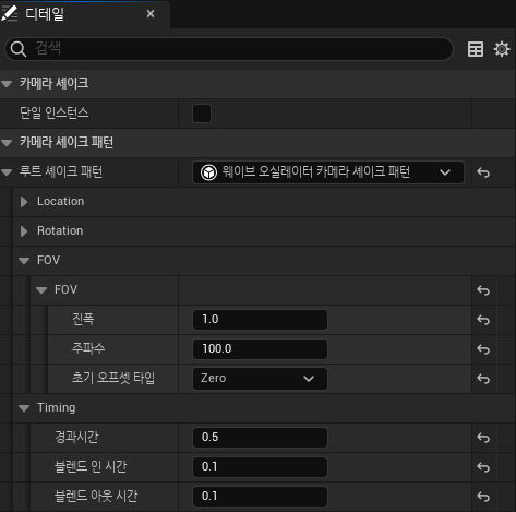 CameraShakeBase 상속받아서 BPC_ShakeDefault 생성