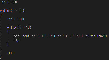 while(true) 가 되면, 코드블록 안에 있는 코드를 계속 반복한다.