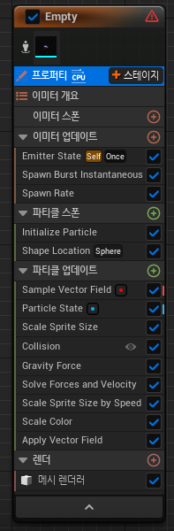 Apply Vector Field 를 추가하면, Sample Vector Field 를 반드시 추가해야한다.
