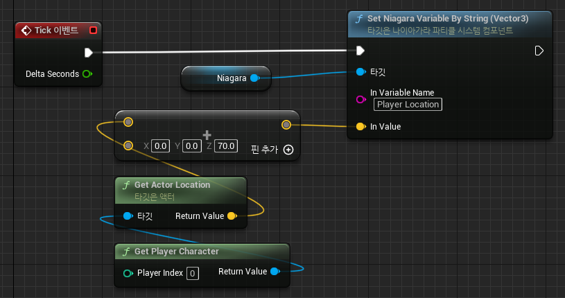 플레이어 위치를 매 틱마다 받아와야하기 때문에 Tick 이벤트 설정