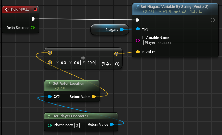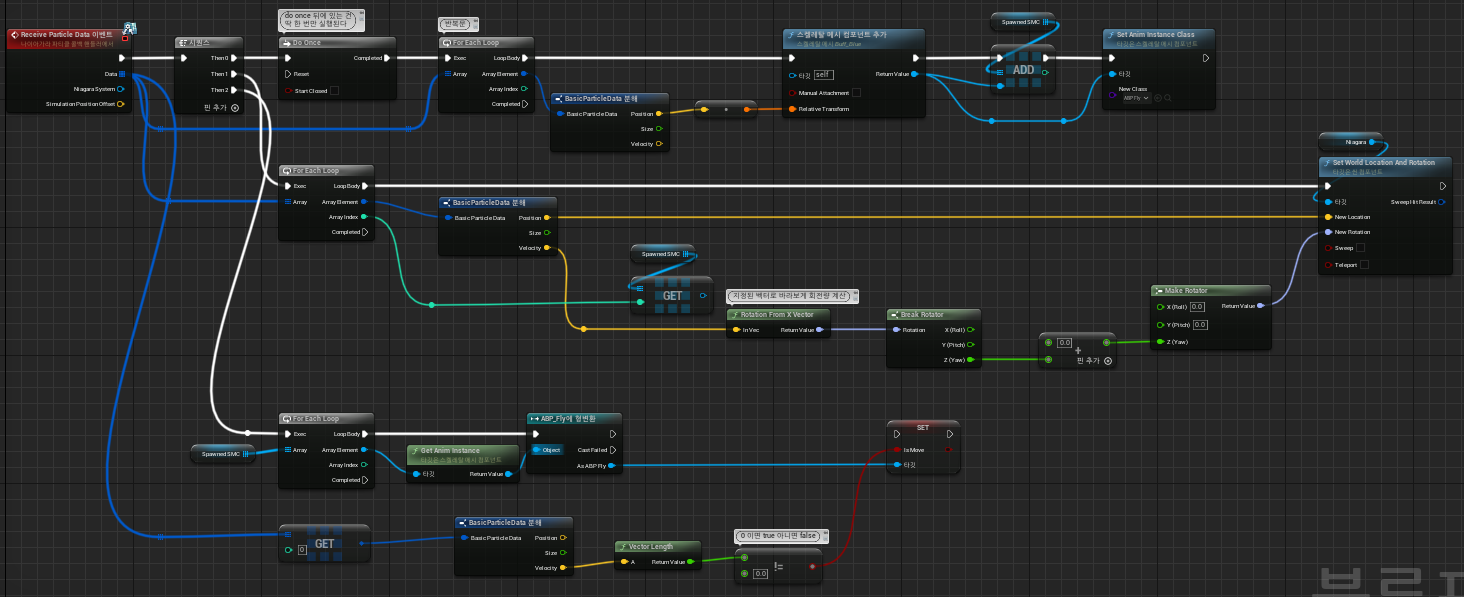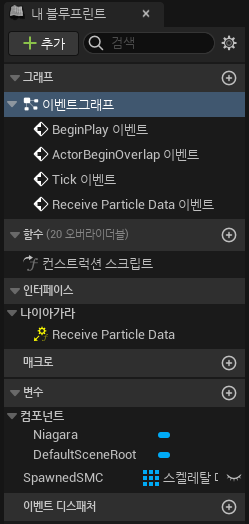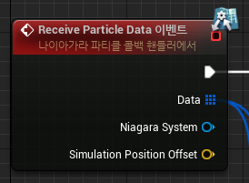 좌측에 인터페이스 생성됨 -> 나이아가라 -> Receive Particle Data 더블 클릭 -> Receive Particle Data 이벤트 생성됨