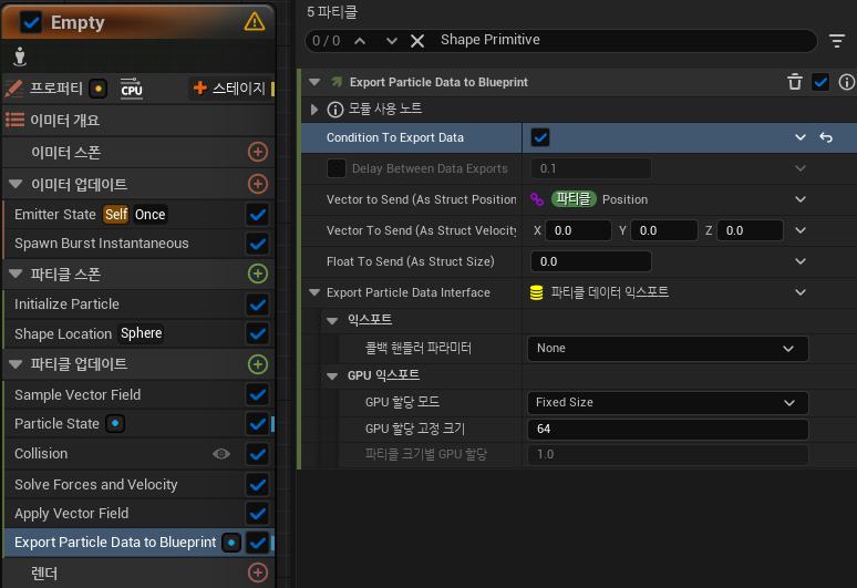 Export Particle Data Interface -> 익스포트 -> 콜백 핸들러 파라미터