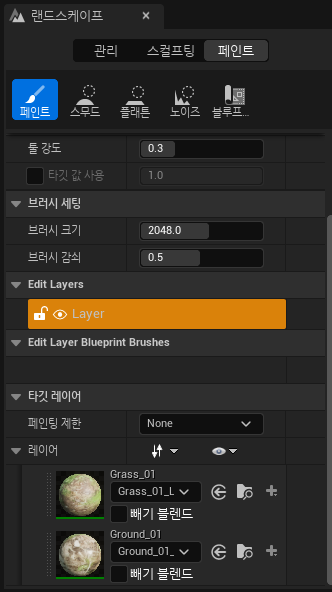 그러면 랜드스케이프에 레이어가 생성이된다.