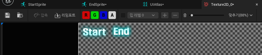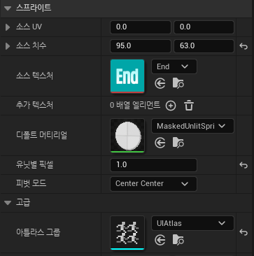 2DGame 폴더 -> SpriteAtlas 폴더 -> 페이퍼2D -> 스프라이트 -> EndSprite 생성
