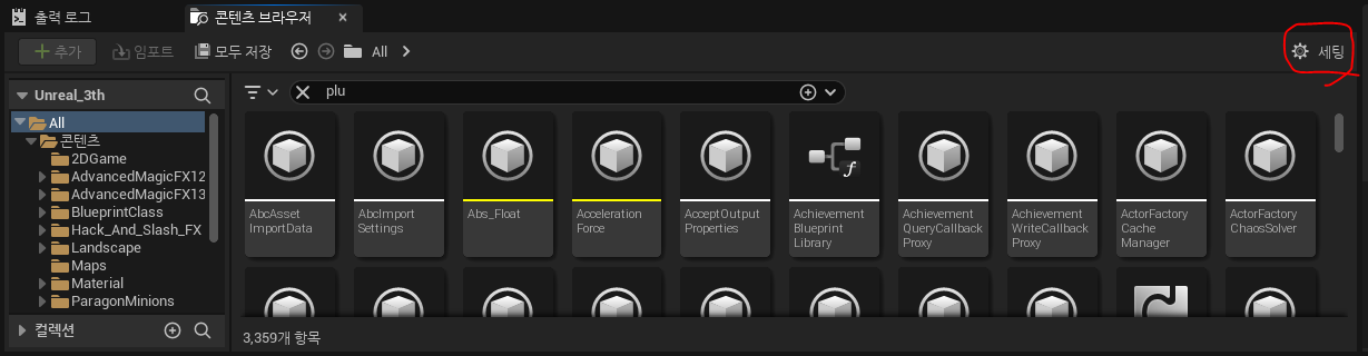엔진 콘텐츠 표시, 플러그인 콘텐츠 표시 체크 해야 paper2d 검색가능!