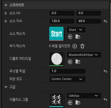 2DGame 폴더 -> SpriteAtlas 폴더 -> 페이퍼2D -> 스프라이트 -> StartSprite 생성