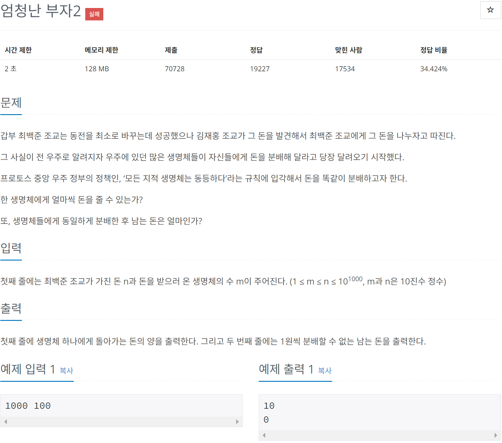 10^1000 을 표현할 정수 형태를 모르는게 틀린 원인 ..