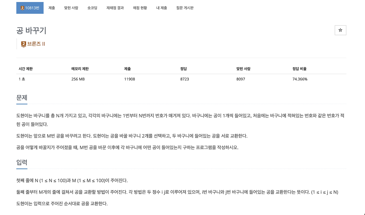 백준 10813번: 공 바꾸기 / C++ 문제풀이