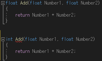 위에 함수는 반환타입과 상관없이 인자의 개수와 타입이 모두 같아서 오버로딩이 불가능하다.
