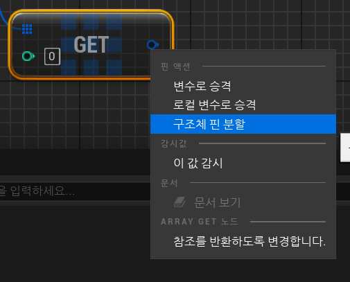Get a Copy : 복사 방식으로 가져오기Get a Ref : 참조 방식으로 가져오기 Get (a copy) 는 배열의 특정 인덱스의 값을 복사하여 반환한다.따라서 Set integer (ref) 를 사용하여 값을 변경하더라도 실제 배열의 값은 변경되지 않는다.Get (a ref) 는 배열의 특정 인덱스의 참조를 반환하므로 Set integer (ref) 를 사용하여 값을 변경하면 실제 배열의 값도 변경된다. https://www.youtube.com/watch?v=19yCMhNQ6Dc 구조체 핀 분할하면 설정한 핀으로 분할 되어 나옴 * Array 타입 정리 블로그https://blog.naver.com/dami2you/223118621850 Day.16[Unreal Engine] 자료구조 타..